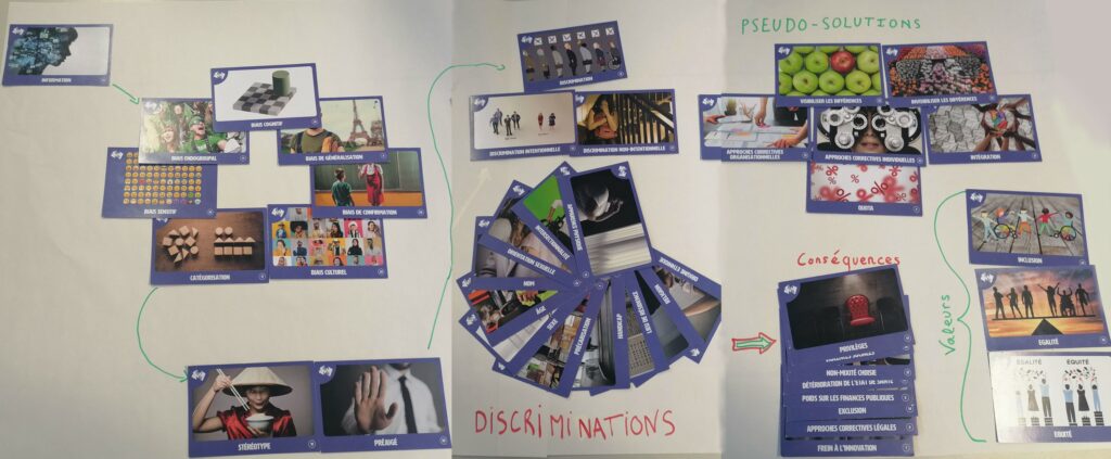 During our classes, we had the opportunity to work in groups for two sessions to create a mural about diversity. This mural is an awareness tool aimed at sparking awareness and questioning about discrimination and inclusion within organizations. My classmates and I used cards that we connected together to achieve the following result: